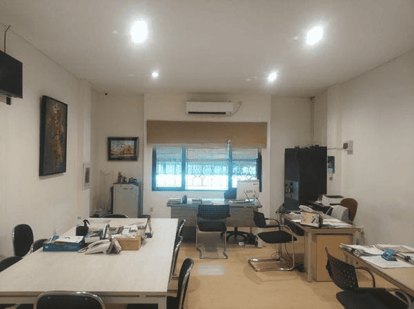 Dengan luas tanah 100m² dan luas bangunan 180m², ruko ini memiliki dimensi 5×12 meter dan dirancang dengan tiga lantai yang dilengkapi dengan tiga kamar mandi. Semua fasilitas sudah lengkap dan siap digunakan, mulai dari listrik 7700 watt, internet Biznet 100 Mbps, hingga sistem keamanan CCTV 6 unit yang terhubung dengan TV monitor. Untuk kenyamanan, ruko ini juga dilengkapi dengan 3 unit AC Daikin serta sistem telepon dengan 4 line hunting dan PABX 12 ekstensi.