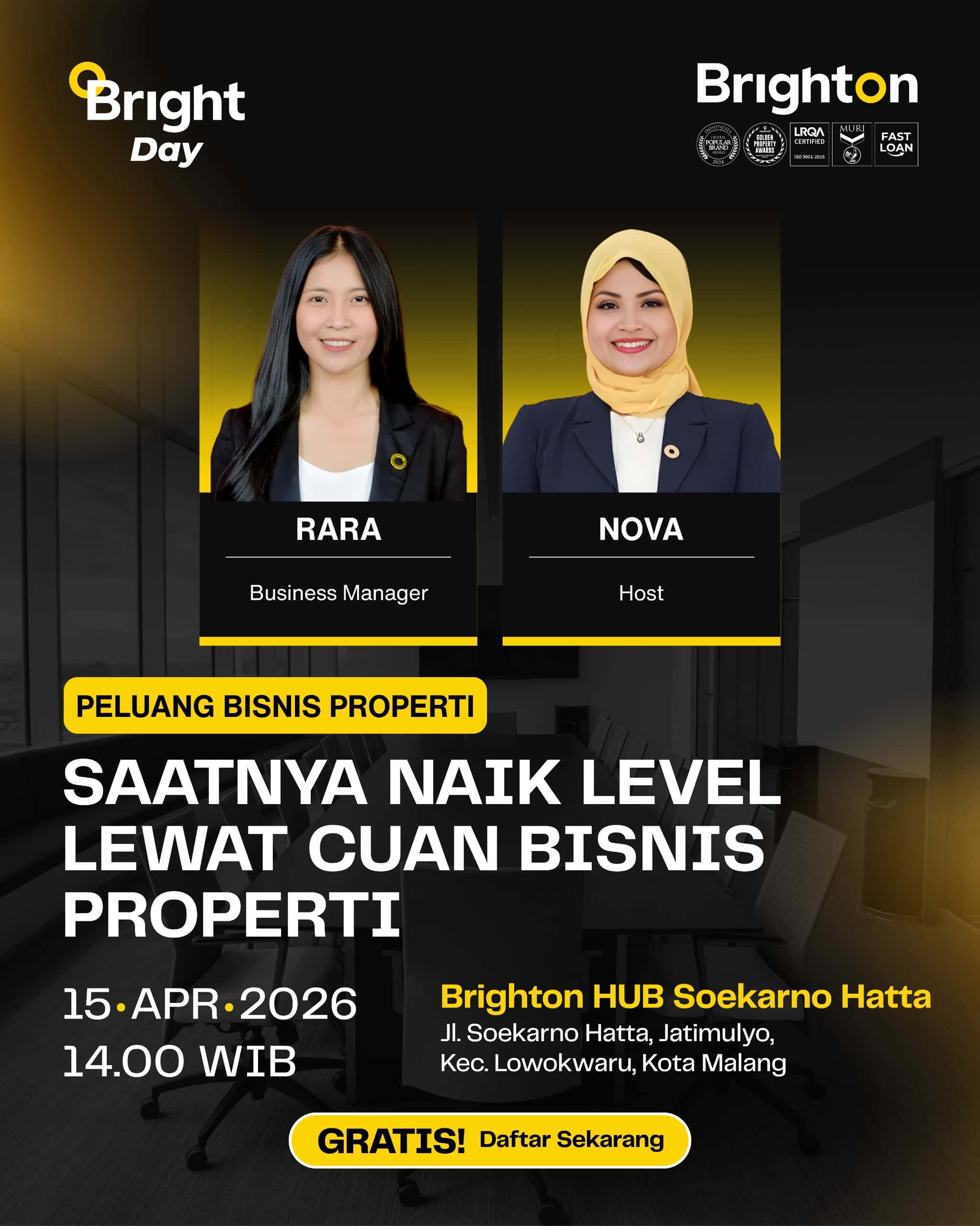 Bright Day Malang Soekarno Hatta : Saatnya Naik Level Lewat Cuan Bisnis Properti
