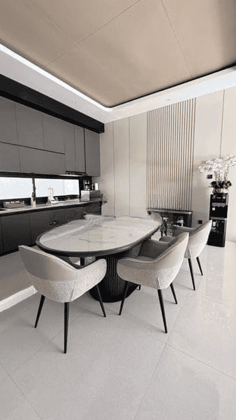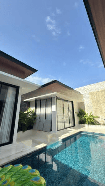 Standing on 300 m² of land with a 260 m² building, this villa features 3 bedrooms, 3 bathrooms, and an additional maid’s room. The spacious living area connects to a private 8 x 3.5 meter swimming pool, creating a relaxing atmosphere.